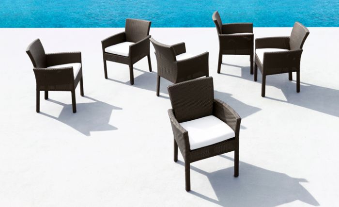 Synthetic rattan is easily one of the best materials around for providing a truly comfortable and beautiful outdoor dining experience. Synthetic rattan holds up better to difficult weather conditions than either wood or simple plastic, and the smaller weave and enhanced flexibility even helps synthetic rattan have a durability edge when compared furniture made from synthetic wicker alone even when both choices are technically made from the same compound.