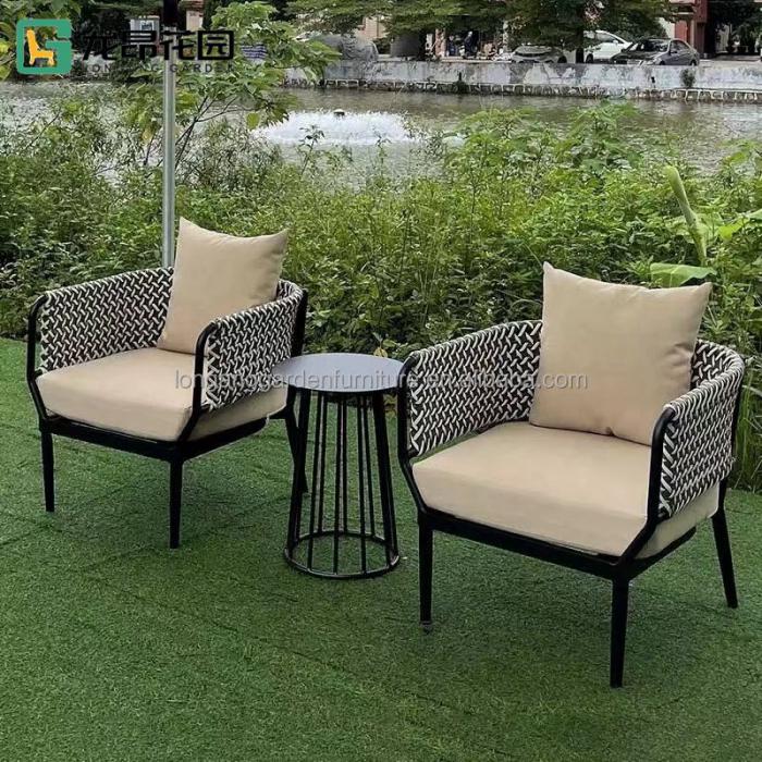 Simple leisure courtyard beach restaurant aluminum wicker outdoor dining table and chair furniture