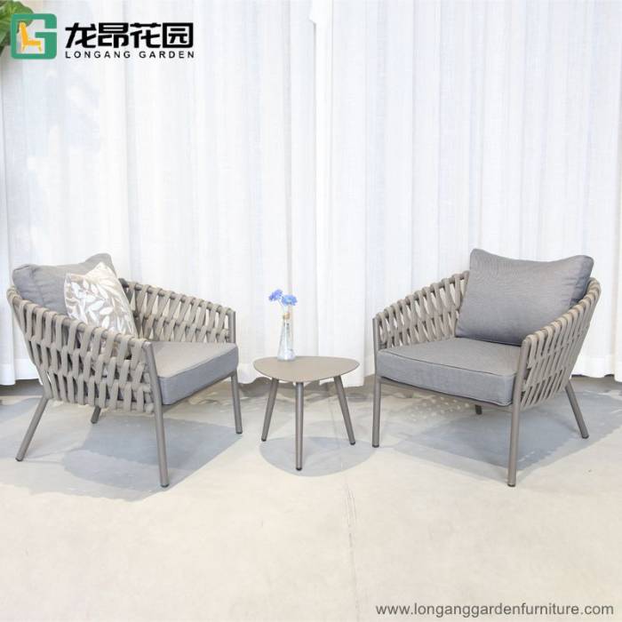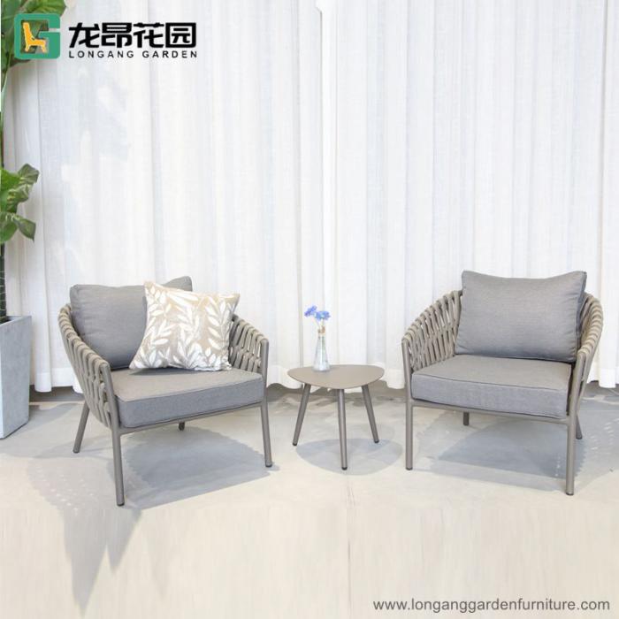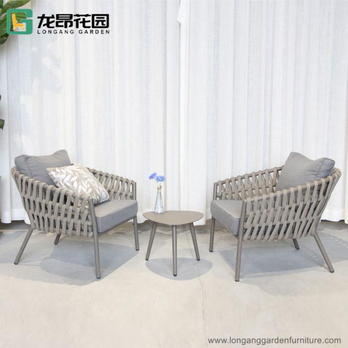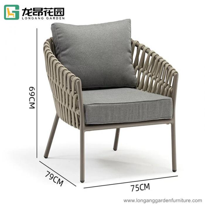 Classic outdoor leisure dining table and chairs garden restaurant comfortable rope dining chairs