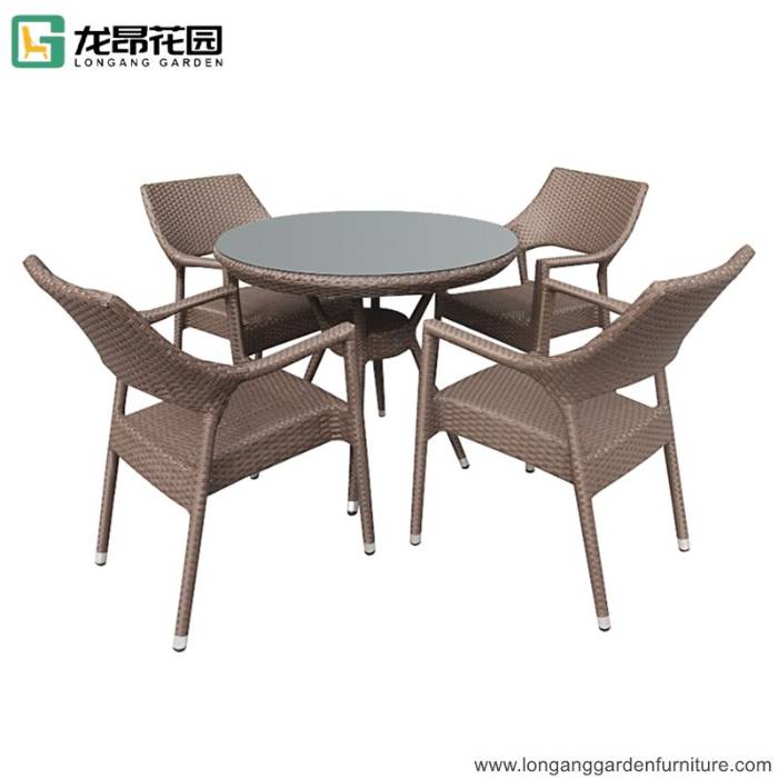 Foshan longang outdoor wicker dining chair cafe chairs outdoor garden villa dining table and chairs set