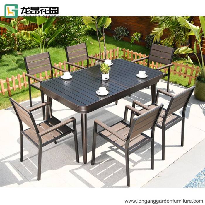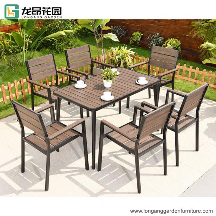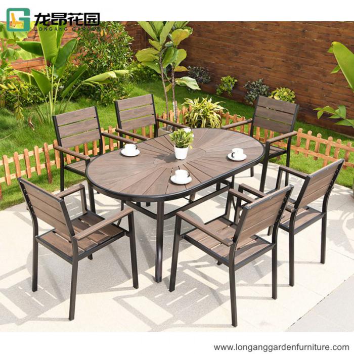Vintage outdoor patio garden dining set swimming pool leisure teak/plastic wood table and chair combination