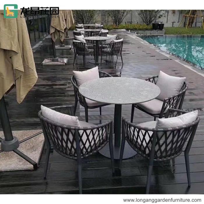 Modern and simple restaurant dining set outdoor leisure garden rope chair and table