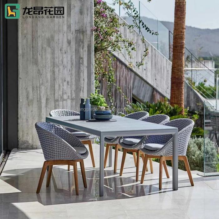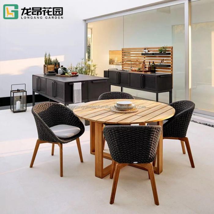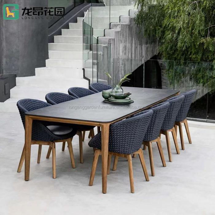Outdoor Patio Furniture Nature Teak wood Furniture All Weather Waterproof Fabric Solid Wooden Teak Garden dining set