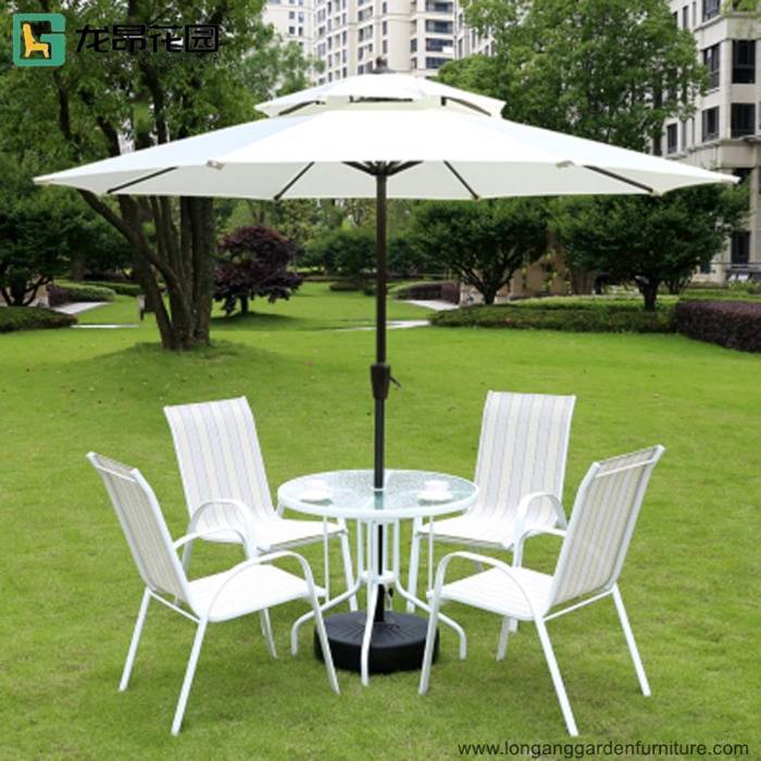 Leisure outdoor garden chair hotel patio afternoon tea mesh chair with umbrella hole table