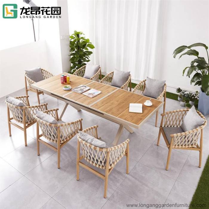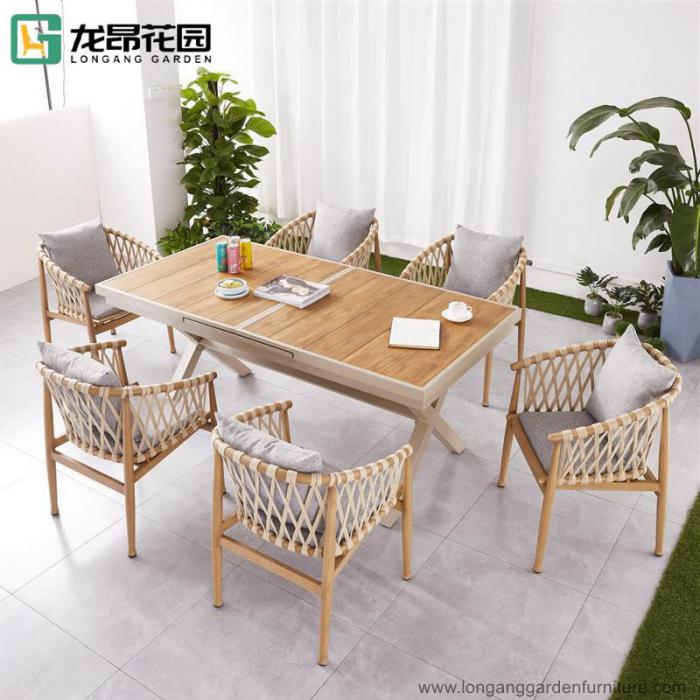 Patio Furniture Outdoor Restaurant Wooden Aluminum Extendable Dining Table