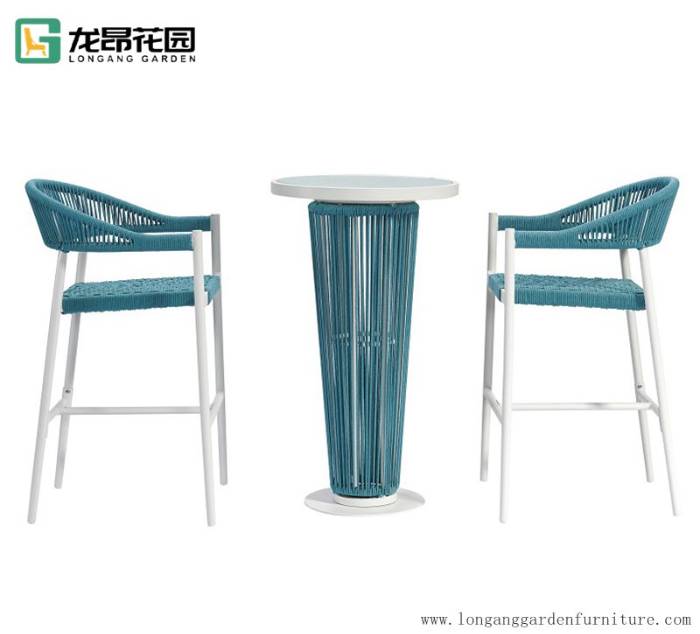 Modern Bar Furniture Stool Set Rope Woven Bar Chair with tables for restaurant patio