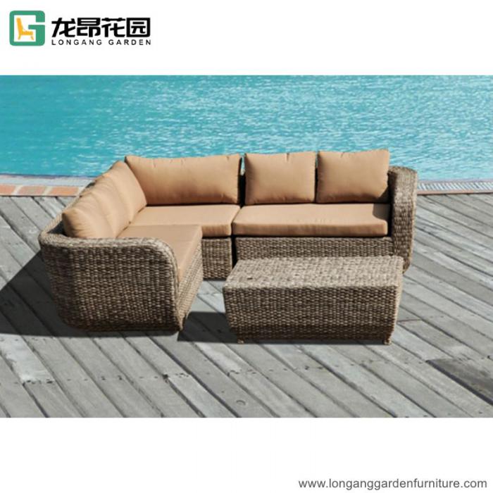 Luxury Outdoor Upholstered Furniture Garden Sofa Set Rattan Lounge Patio Furniture Sofa Set with Backrest