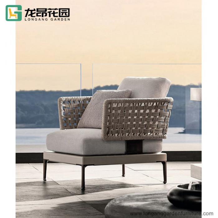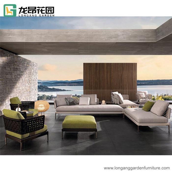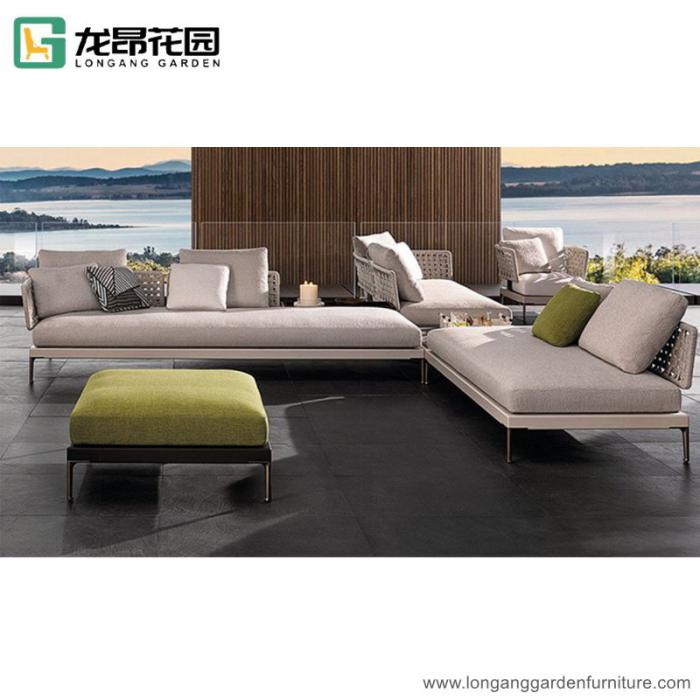 New design outdoor sofa furniture combination garden leisure balcony rope sofa suit with waterproof cushion