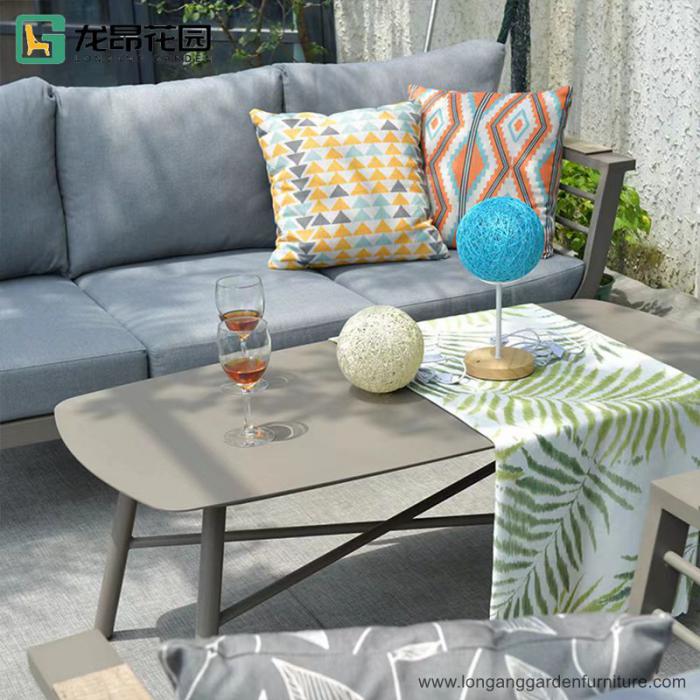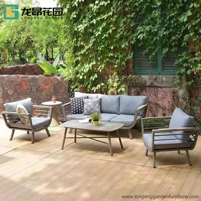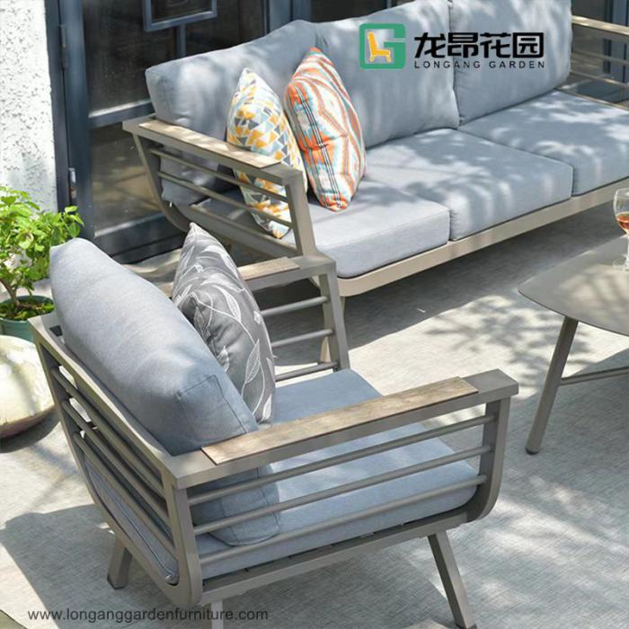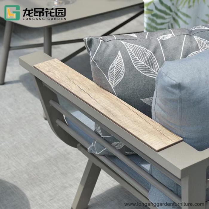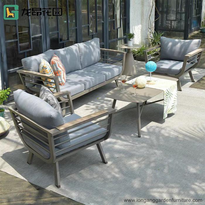 Hot selling aluminum furniture garden sofa set patio hotel Courtyard teak wood sofa aluminum alloy outdoor sofa