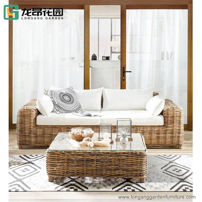 Vintage outdoor rattan sofa furniture set garden hotel living room sofa