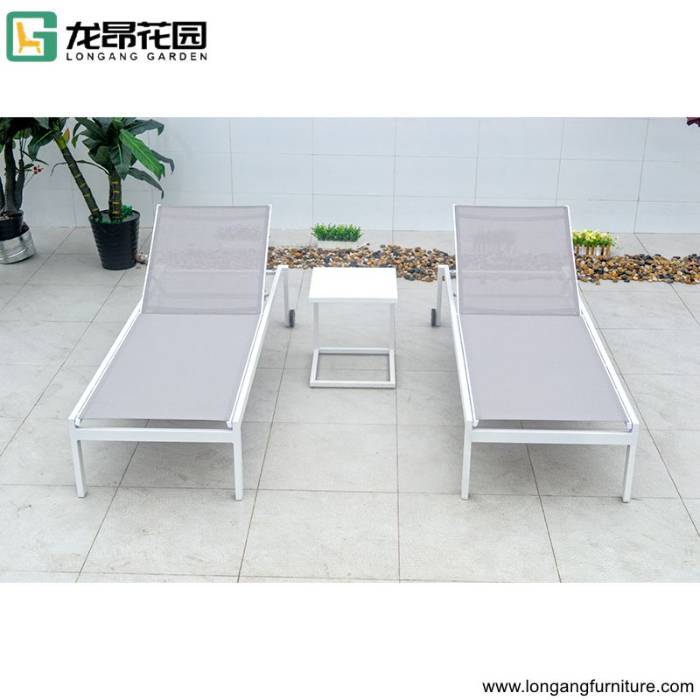 Hotel swimming pool aluminium folding mesh beach sun lounger outdoor lounge chair