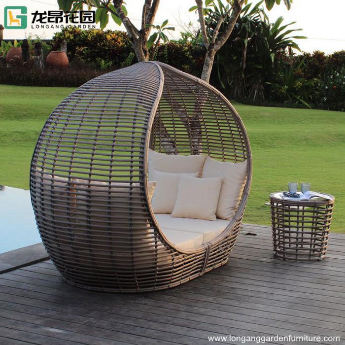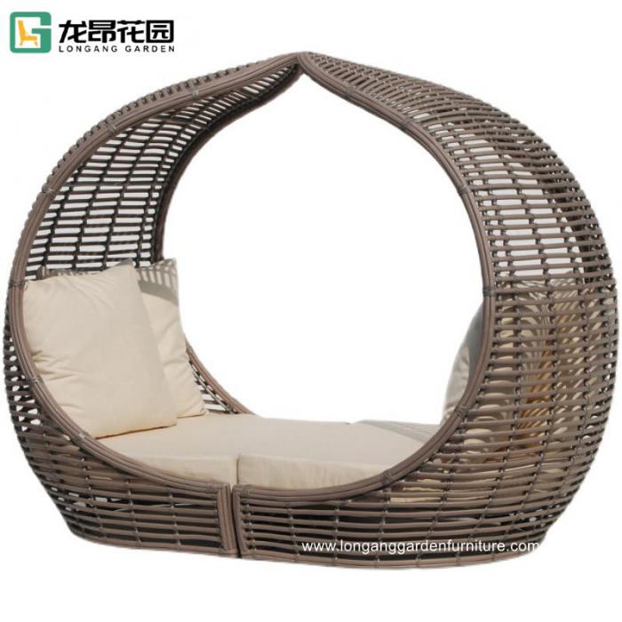 Daybed Patio Rattan Outdoor Furniture Garden Wicker Sun Bed PE Rattan Poolside Daybed Hotel Beach Sofa Bed