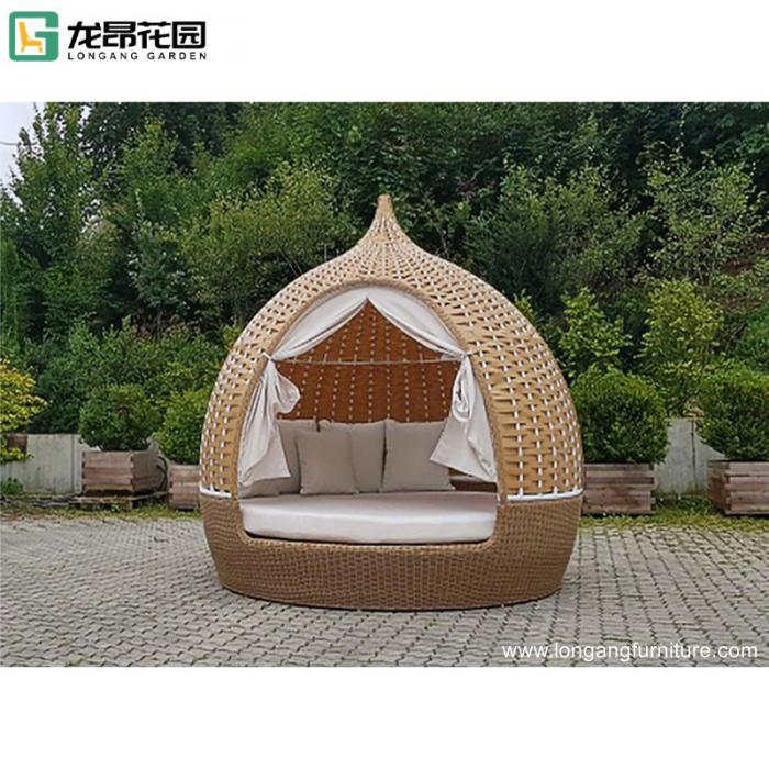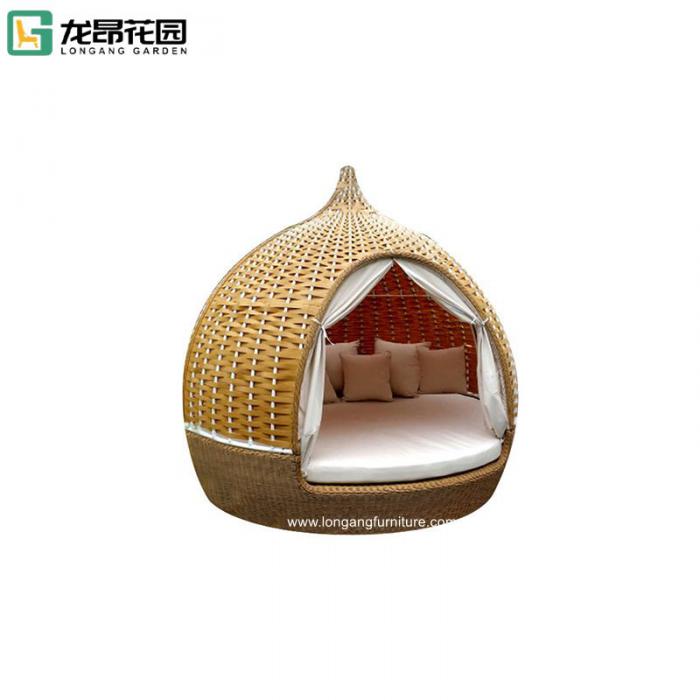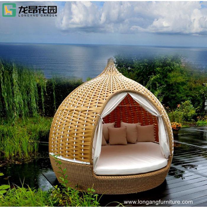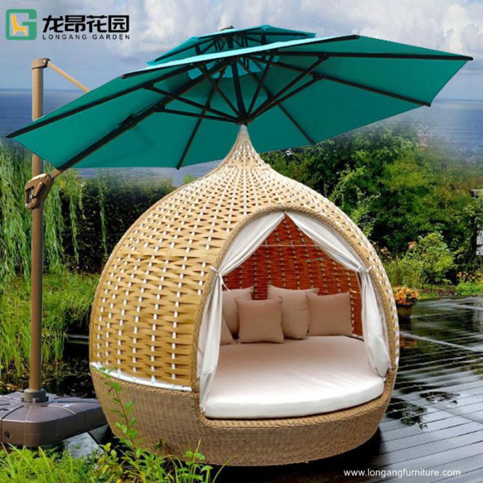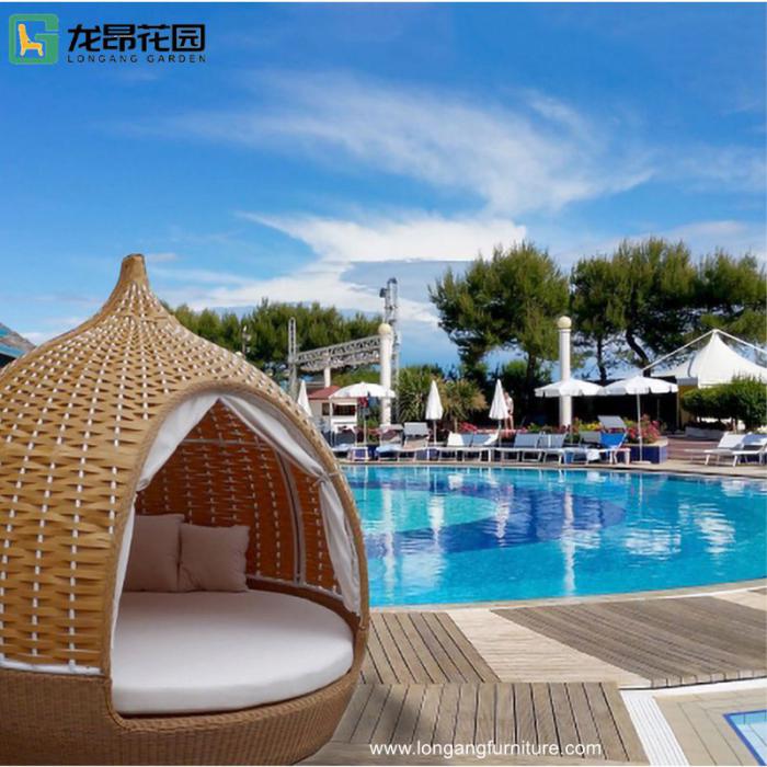 Outdoor double beds beach lounger hotel swimming pool birdcage rattan aluminum sun lounger