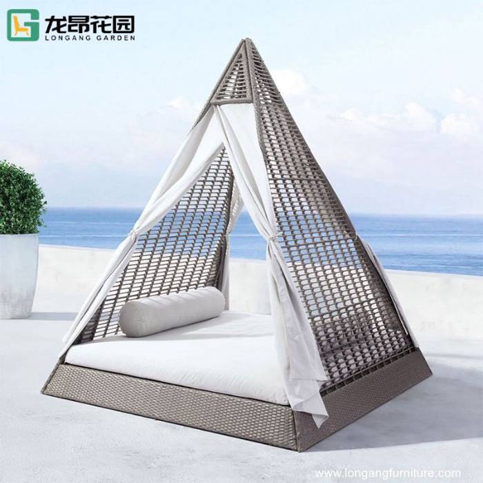 Wholesale unique rattan outdoor pyramid shape lazy boy sunlounger beach bed