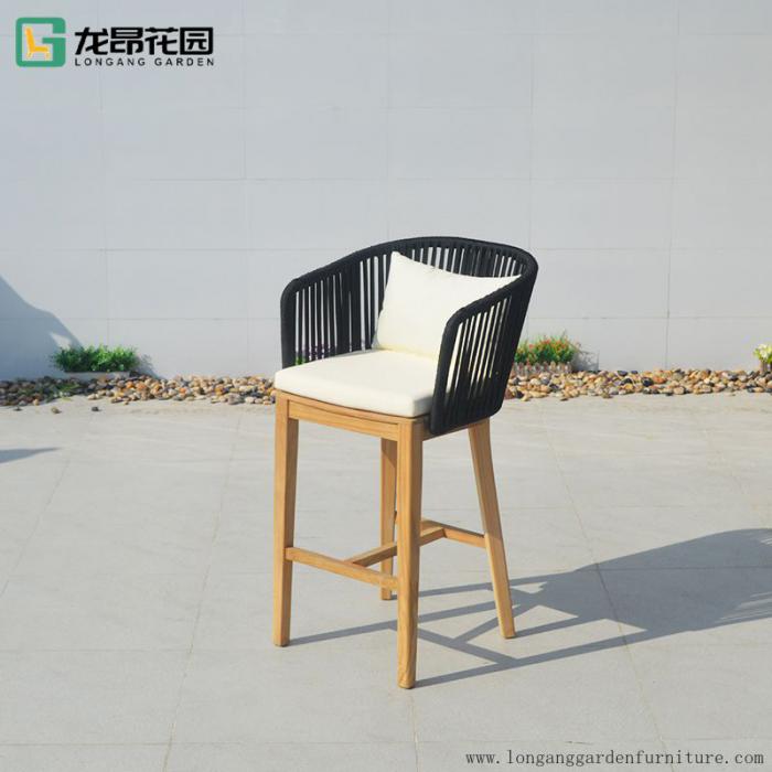 Hot selling outdoor dining chair modern braided rope furniture patio outdoor bistro high bar chair