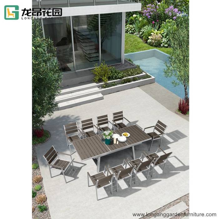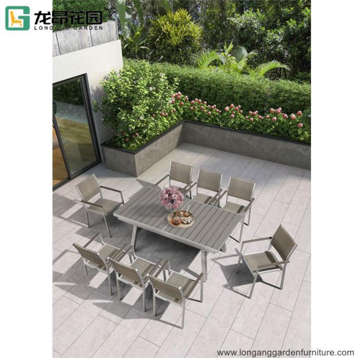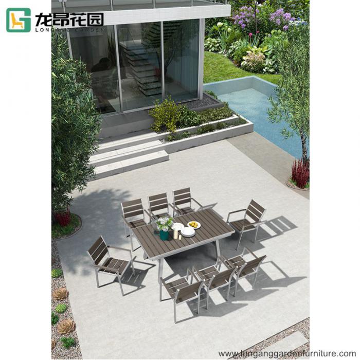 1 Plastic wood dining table + 6 Plastic wood chairs