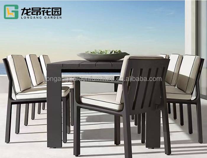 Restaurant Furniture Factory Customized Hotel Modern Patio Dining Table And Chairs Garden Aluminum Outdoor Furniture Dining Set