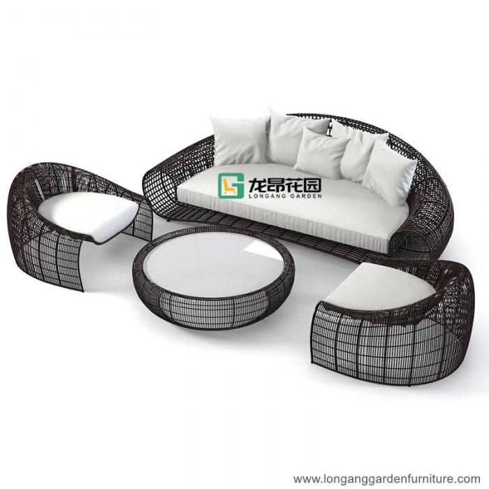 Unique Hotel Garden Patio Rattan Furniture Wicker Upholstery Canape Sectional Couch Sofa Set