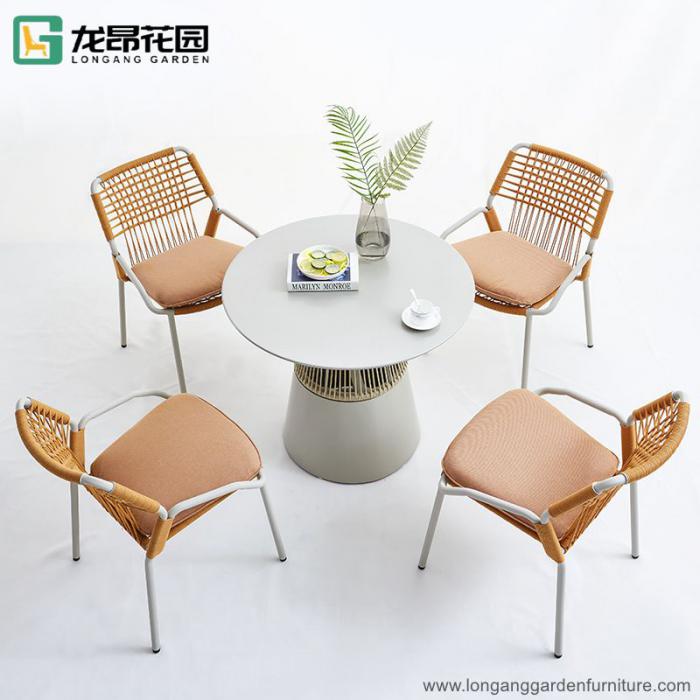 High quality garden cafe aluminum dining woven rope metal patio chair outdoor
