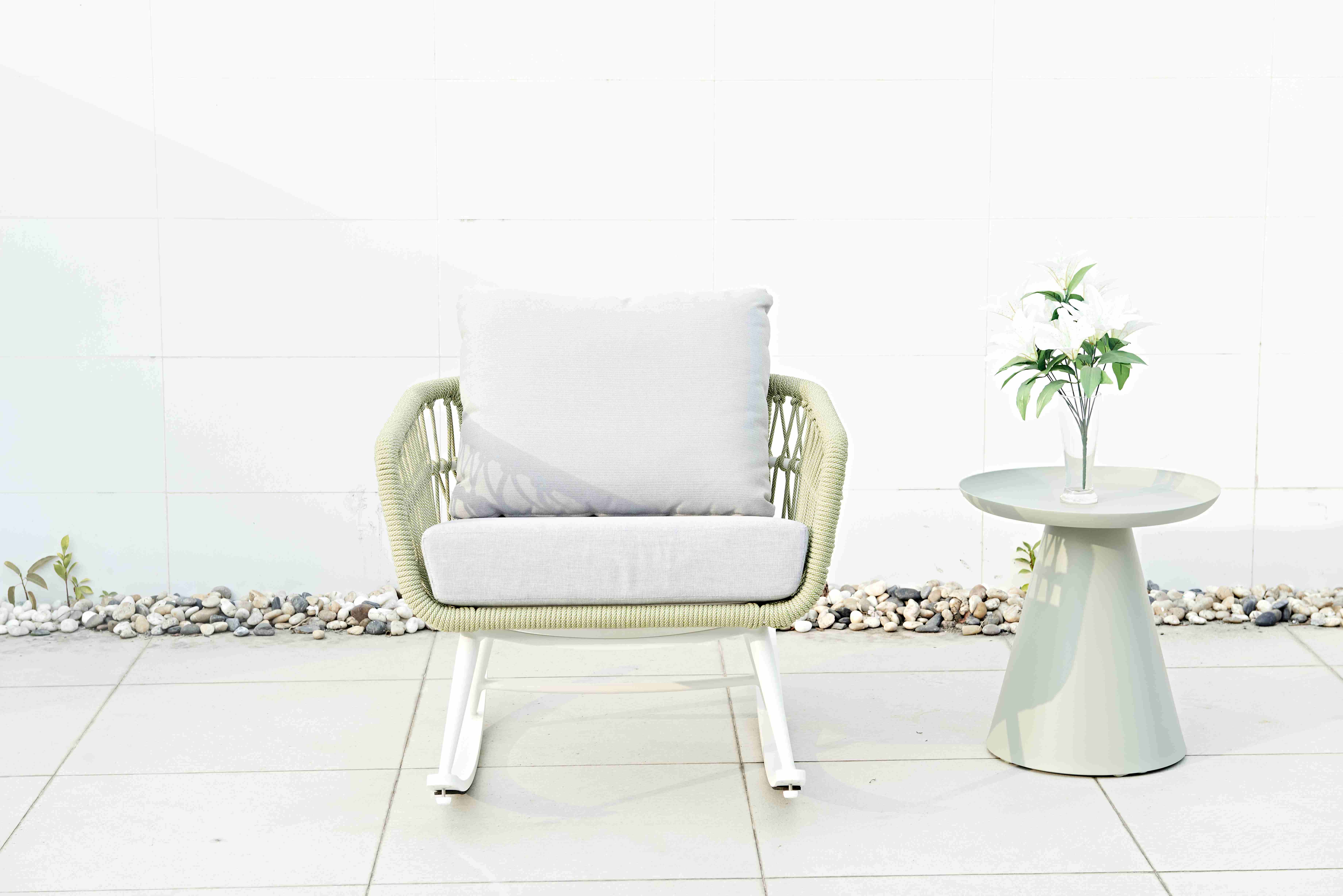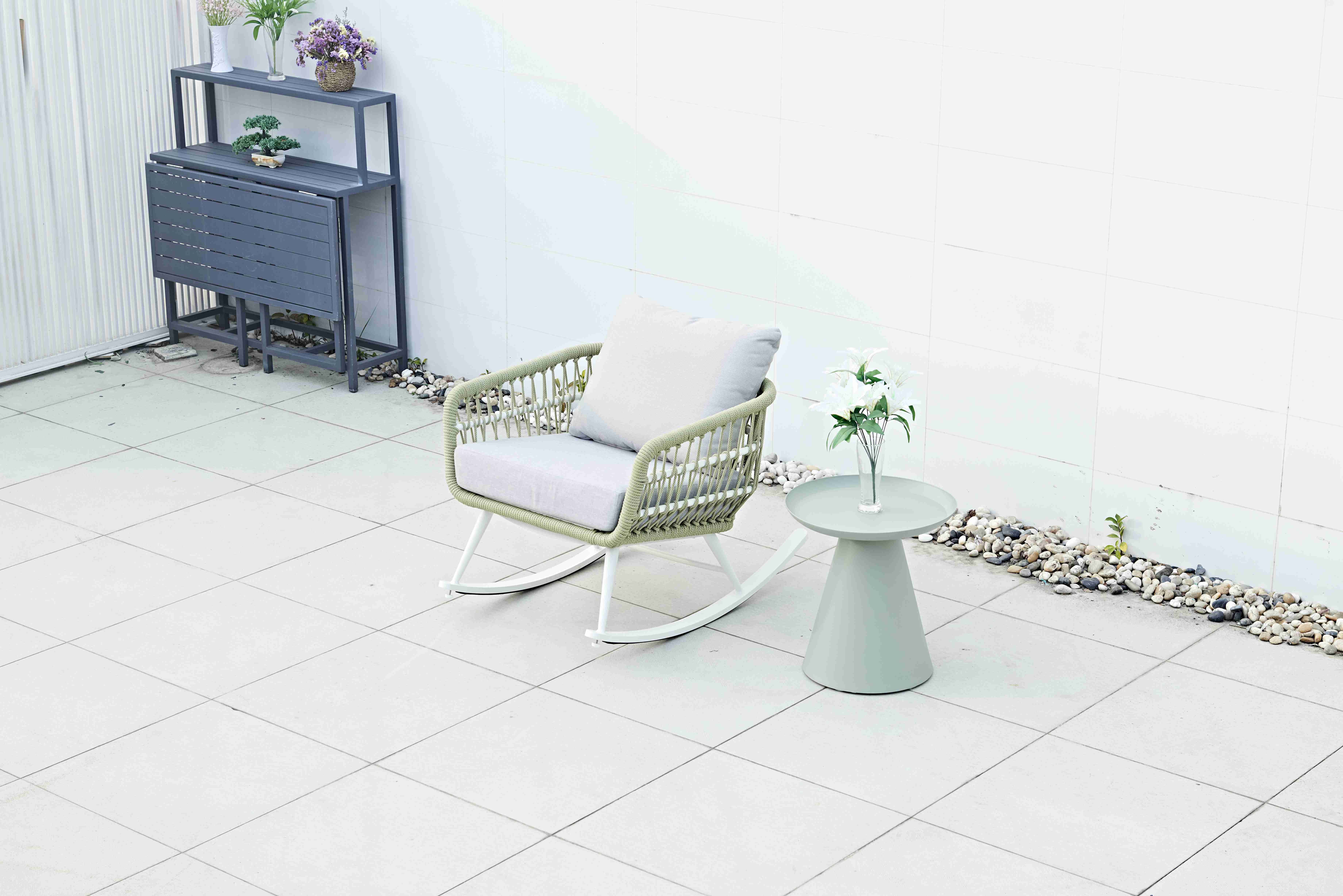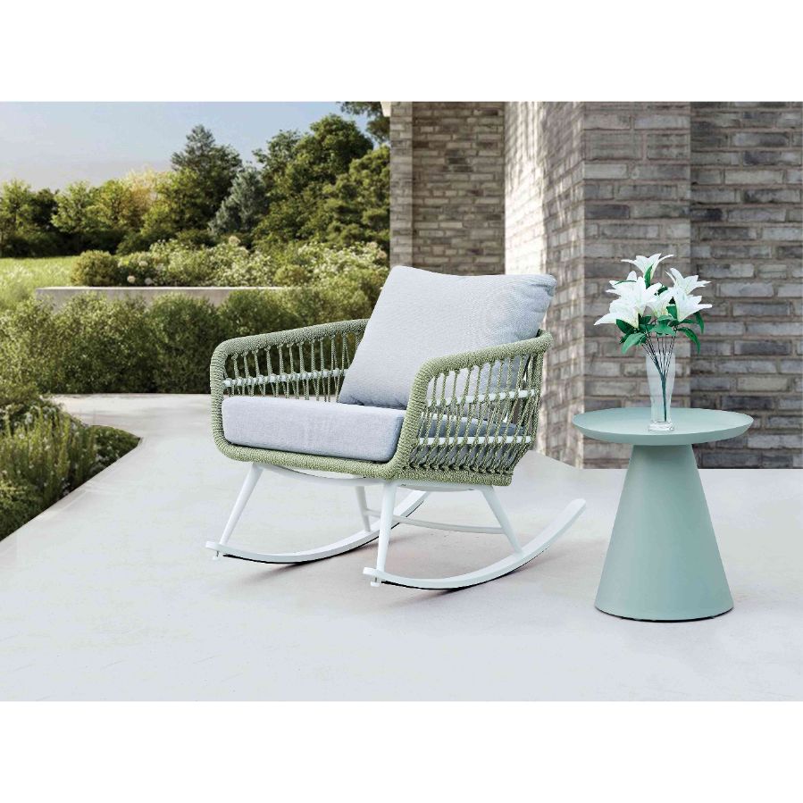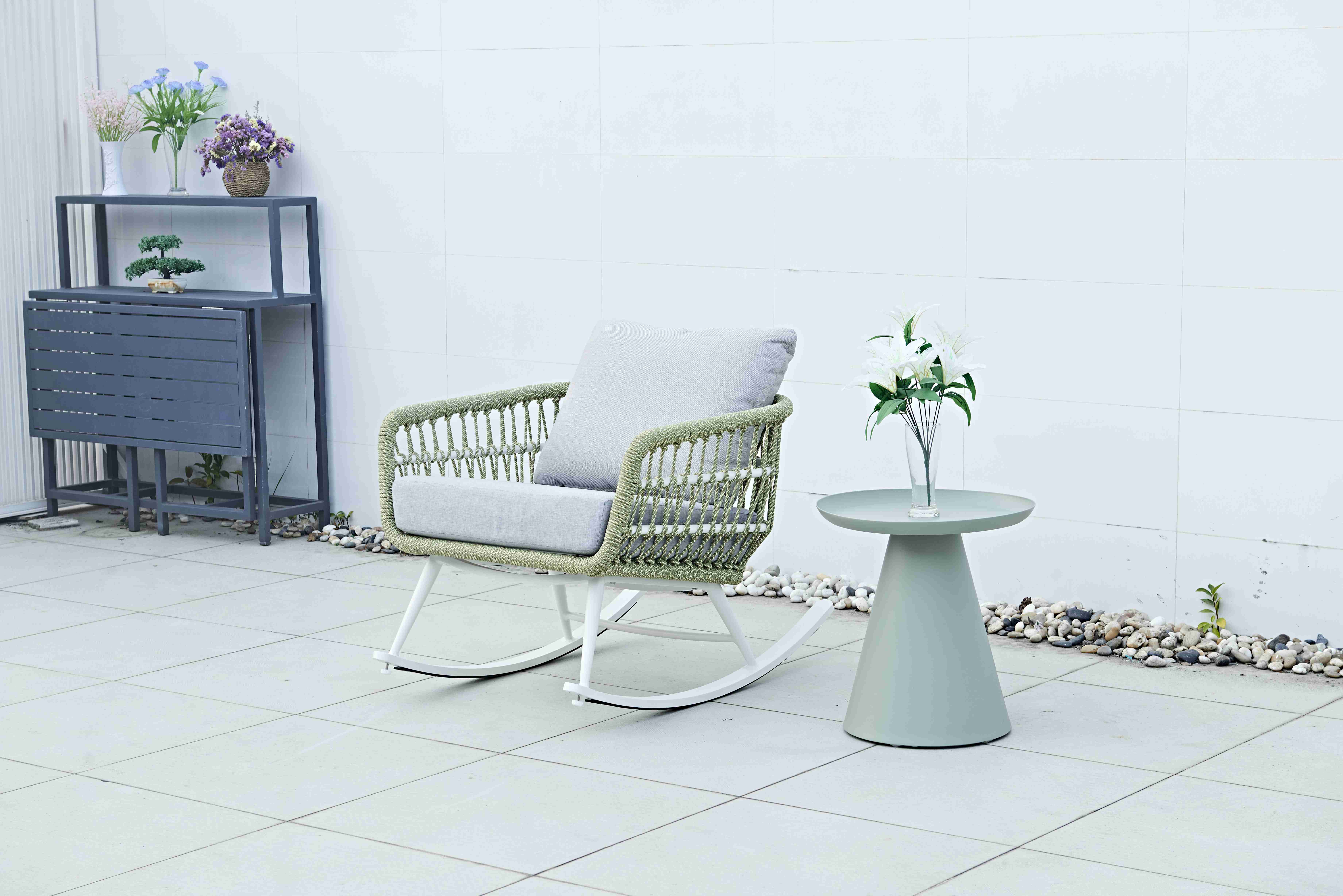 Modern Waterproof Aluminium Rope-Woven Rocking Chair for Outdoor Garden Courtyard Farmhouse Patio for Bedroom School Use