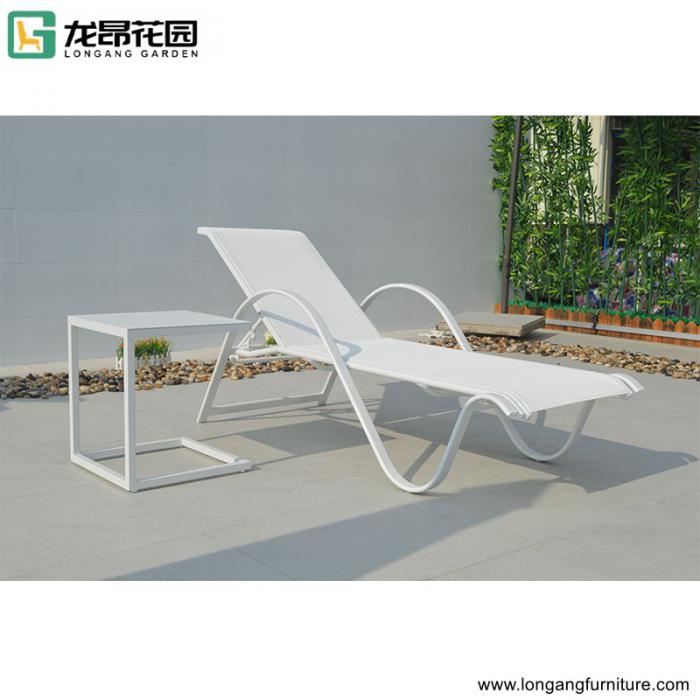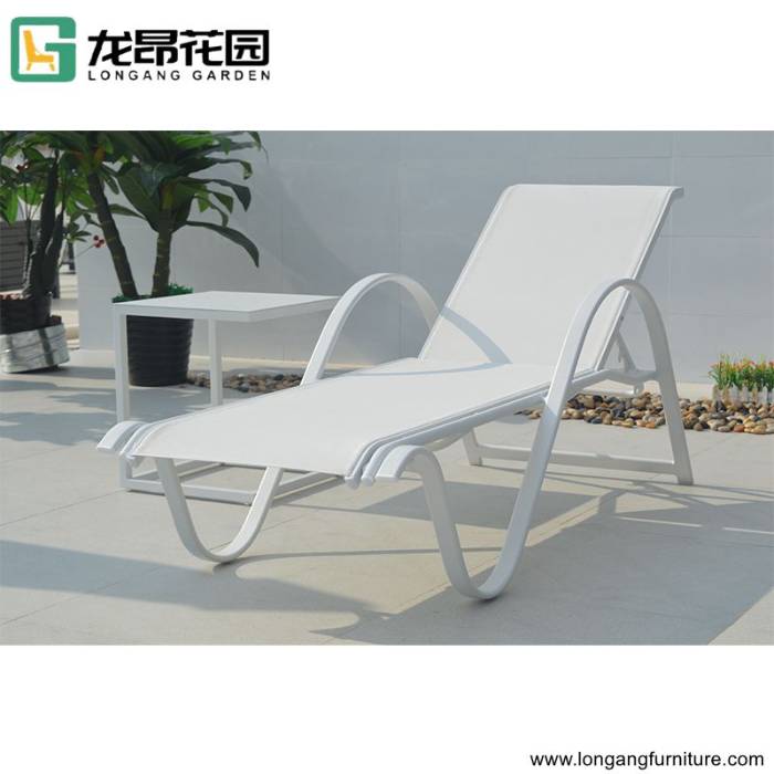 Hotel outdoor swinging pool sunlounger white sling chaise lounge chair for beach